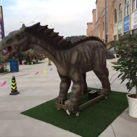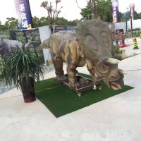 上形成恐龙的表皮,再喷上颜色,最后植入控制程序,这样一条完整的仿真恐龙就出来了。这样的恐龙可以做到眼睛、头、嘴、脖子、爪子、腹部、腿、尾巴等动作再加上合适的叫声就非常的生动了!
