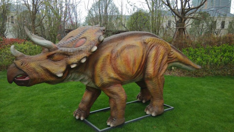 仿真恐龙第一是采用钢材制作恐龙支架,加上机械、传动,用高密度海绵进行立体加工制作恐龙肌肉部分,然后在肌肉上面加入纤维,增加恐龙皮肤的强度,最后在用硅胶稀释后均匀的刷到恐龙的肌肉