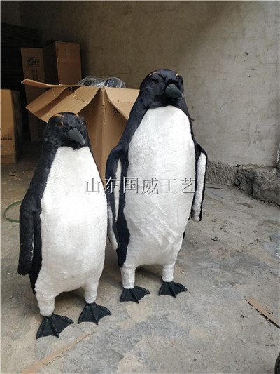 仿真企鹅模型是根据实际企鹅比例根据客户要求来定做的专业模型,本产品应用于影视拍摄仿真企鹅道具,博物馆专业展览仿真模型,园林景区实物比例仿真企鹅模型等。仿真企鹅模型产品的内胎雏形全部采用人工分刻技术,由专业美工大师雕刻模具,形态归真比例协调,引进德国一体注塑科技机台,保证企鹅雏形没有接痕。仿真企鹅模型外部皮毛采用优质山羊皮安全熟制加工,去头皮,使皮革安全柔软又不失毛峰的油亮光滑。山东国威工艺成立于1980,是一家致力于开发生产仿真企鹅模型的厂家,欢迎新老顾客来图定制,祝大家财源亨通。