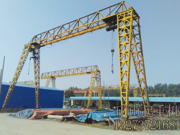 2.安装方便;底横梁与支架高强螺栓连接;主梁套入支腿用的套臂,电动葫芦挂到工字钢上.