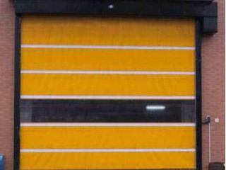 快速门又称为快速卷帘门、高速门、高速卷帘门,是通过变频器控制、编码器定位、门帘(PVC材质)快速升降,是专为物料的快速流动(以缩短进出时间)而设计的。快速门是以多关节活动的软片串联在一起,在固定的滑道内,以门上方卷轴为中心转动上下的门,安全配置和密封性能尤为重要。