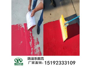 华通MMA彩色防滑路面采用的金刚砂与溶剂的拌合,在不改变原有道路结构的基础上,可以在水泥混凝土、沥青路面和其他材料表面刮涂,附着力强不易脱落。华通MMA彩色防滑路面由人工刮涂到路面上的彩色涂层,起到防滑提醒、明确道路功能的效果,其着色均匀,色差低,易施工,没有经验的工人也能很好的施工,华通MMA彩色防滑路面建议刮涂施工,使用厂家配套的刮板刮涂施工即可,对施工温度要求不高,施工路面的要求是稳定基面,无松散无破损,干净干燥即可。