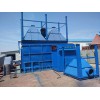 随着过滤的不断进行,除尘器阻力也随之上升,当阻力达到一定值时,清灰控制器发出清灰命令,首先将提升阀板关闭,切断过滤气流;然后,清灰控制器向脉冲电磁阀发出信号,随着脉冲阀把用作清灰的高压逆向气流送入袋内,滤袋迅速鼓胀,并产生强烈抖动,导致滤袋外侧的粉尘抖落,达到清灰的目的。由于设备分为若干个箱区,所以上述过程是逐箱进行的,一个箱区在清灰时,其余箱区仍在正常工作,保证了设备的连续正常运转。之所以能处理高浓度粉尘,关键在于这种强清灰所需清灰时间极短(喷吹一次只需0.1~0.2s)。采用上部抽袋方式,换袋时抽出骨架后,脏袋投入箱体下部灰斗,由人孔处取出,改善了换袋操作条件。由于采用分室停风脉冲喷吹清灰,喷吹一次就可达到彻底清灰的目的,所以清灰周期延长,降低了清灰能耗,压气耗量可大为降低。同时,滤袋与脉冲阀的疲劳程度也相应减低,从而成倍地提高滤袋与阀片的寿命。本除尘器采用分室停风脉冲喷吹清灰技术,克服了常规脉冲除尘器和分室反吹除尘器的缺点,清灰能力强,除尘效率高,排放浓度低,漏风率小,能耗少,钢耗少,占地面积少,运行稳定可靠,经济效益好。适用于冶金、建材、水泥、机械、化工、电力、轻工行业的含尘气体的净化与物料的回收。检修换袋可在不停系统风机,系统正常运行条件下分室进行。滤袋袋口采用弹性涨圈,密封性能好,牢固可靠。滤袋龙骨采用多角形,减少了袋与龙骨的摩擦,延长了袋的寿命,又便于卸袋。
