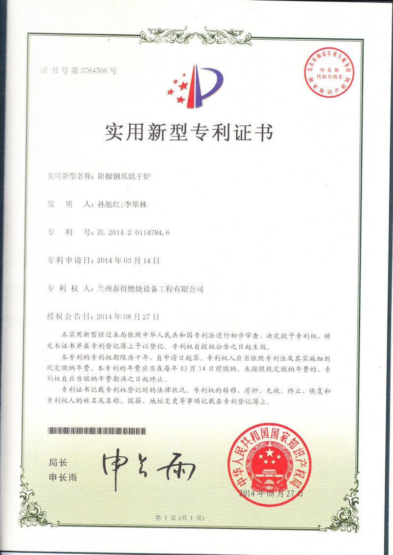新型专利-阳极钢爪烘干炉
