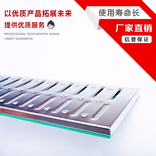 不锈钢水沟盖板采用优质不锈钢板材,经折边,冲压等工艺制作,盖板表面设计有圆形防滑凸点,特别适合油腻湿滑的环境。盖板底部两侧配有防震消音的橡胶垫,坚韧耐用。盖板配有PE材料制成的过滤网,可防堵,防鼠,是厨房的首选盖板,盖板清洗方便,不锈钢材质历久如新!PE落水孔尺寸为13mm*5mm!可有效排水。