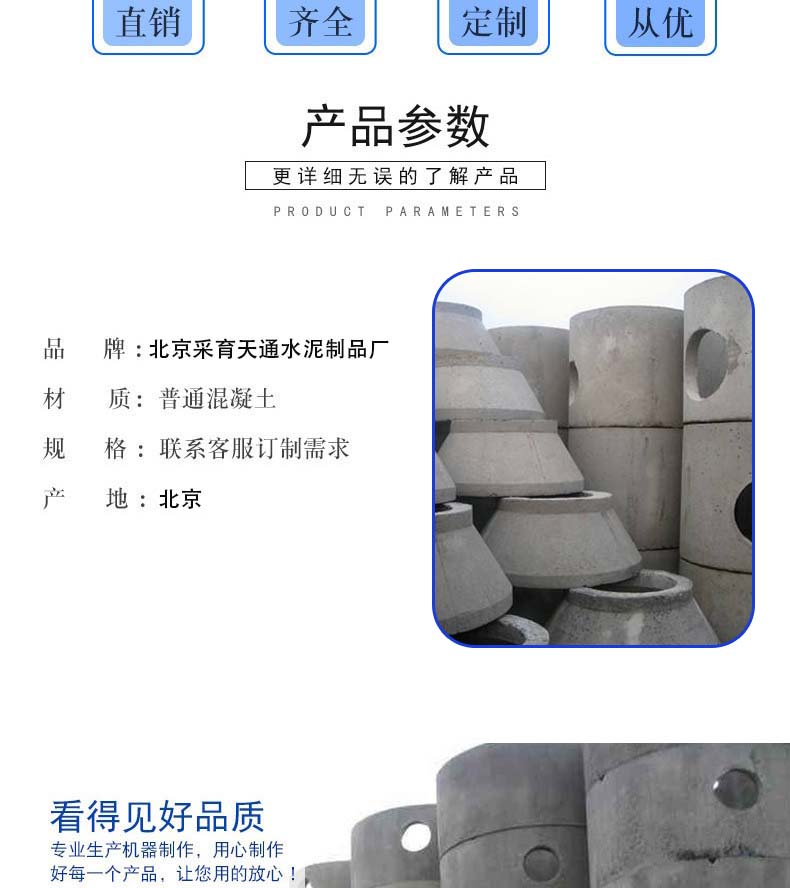 北京采育天通水泥制品厂办公室地址位于中国的首都,政治、文化中心北京,北京 北京市大兴区采育镇倪家村村委会北400米,于2009年03月24日在大兴分局采育工商所注册成立,在工厂发展壮大的10年里,我们始终为客户提供好的产品和技术支持、健全的售后服务,我工厂主要经营预制钢砼式排水构件、化粪池、消防储水池、隔油池及其他水泥制品生产加工;销售:建筑材料、水泥制品、电子产品。(依法须经批准的项目,经相关部门批准后依批准的内容开展经营活动。“有效期限至2018年8月14日”),我们有好的产品和专业的销售和技术团队,我工厂属于北京水泥公司行业,如果您对我工厂的产品服务有兴趣,期待您在线留言或者来电咨询 我厂主要生产:检查井