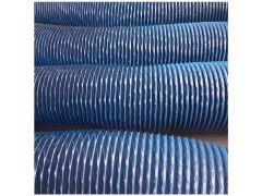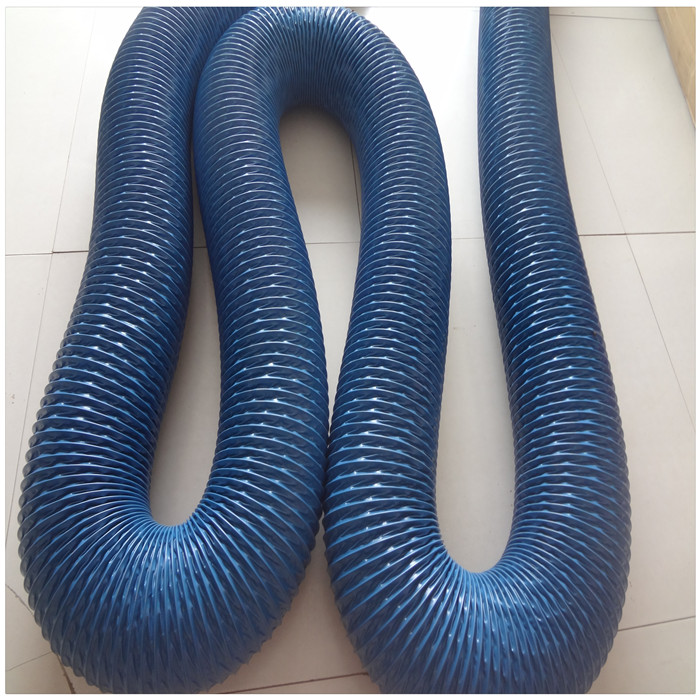 蓝色钢丝风管可使用在100度左右的环境中,抗撕裂,耐高温,耐酸碱,可抽风不被吸扁,不漏风,不渗水,不结露,在高端焊烟净化除尘器设备及高档场地大量应用。