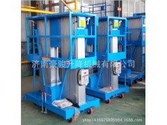 铝合金升降平台分为单柱式、双柱式、三柱式升降机及多柱式等。升高高度在8米以下为单跪柱式,在10米到14米之间为双跪柱式,15米到18米之间则升为三跪柱式或四跪柱式。通过铝合金跪柱的增加达到设备在高空的稳定性,保证作业安全,减小设备晃动的幅度,使高空作业更加平稳。整体采用高强度铝型材精制而成,由于型材强度高,同样也使升降机的台面偏转与摆动极小。该升降机配备了中德合资的液压泵站,该泵站为压铸铝集成阀块,结构紧凑,系统压力 16MPa,选用进口密封件的精磨高压液压油缸作为主要升降动力,经过液压泵站带动链条传动,结构合理,设计紧凑。该升降机下降速度可自调,而且设备设有手动下降装置,保证在停电时的正常工作;设有应急停运按钮;台面设有防滑绝缘扣板,更换方便,易于清洁,维修方便,有效保障工作安全可靠,保证使用人员的绝对安全。外形美观,整体轻盈,能在极小的空间内发挥最高的举升功能,广泛适用于工厂、酒店、宾馆、商场、超市、体育场、车站、电厂等电力线路、照明电器、高架管道等安装维护,高空清洁。可根据客户要求加装蓄电池以满足客户工作场地的不同要求。