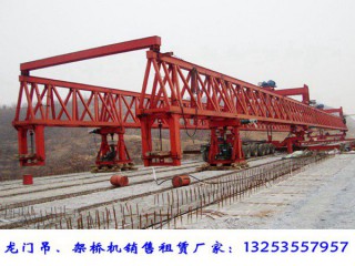 四川广安架桥机租赁公司供应的双导梁架桥机可架设T梁、箱梁和工字梁,有:步履式和轨行式两种,主要用于架设公路预应力钢筋混凝土简支梁片,属于简支型,既可架设直桥、斜桥、也可架设曲线桥。操作简单,安全可靠,易于拆卸、运输、转移工地,便于技术改造。广泛适用于桥梁架设工程。