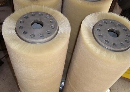 (钢板酸洗毛刷辊)多用于钢板,铜基板,镀锌板,铝板表面处理,刷丝可选用波纹尼龙丝,特殊要求的可选用波纹不锈钢丝,做法采用弹簧环绕的方式制作工艺为佳。这样做出来的毛刷辊表面丝质密度高,且不掉毛,耐磨、耐用,而且在原刷辊刷丝磨坏后,可方便拆卸环绕而成的弹簧刷,这样中间的轴承体可再次利用,大大节省了成本。刷辊大小按配套酸洗机械来定,一般尼龙酸洗毛刷辊用于除油污、除锈、抛光、清扫等;不锈钢丝毛刷辊用于钢板表面去锈、去毛刺或特殊处理成条纹基理效果等。