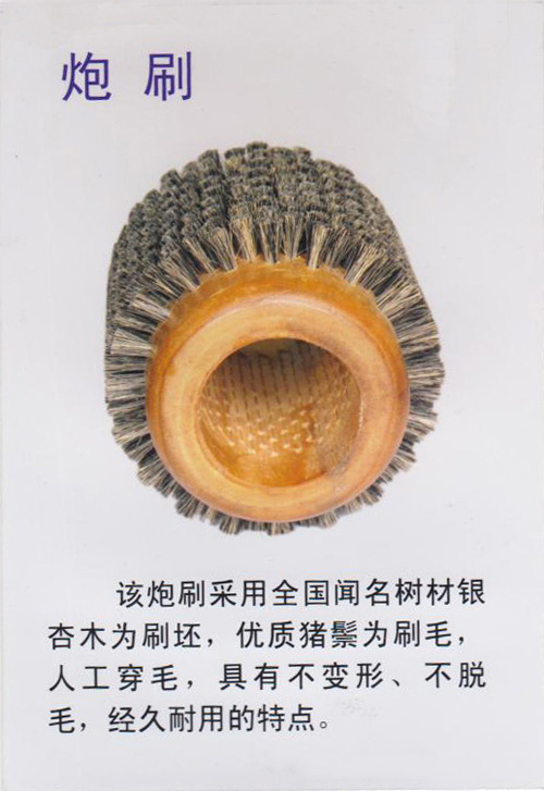 潜山县谐达特种刷业制品厂专业生产的炮筒刷用来刷洗和清理各种军用火炮炮筒的炮刷,产品结构为一种分体式结构的炮刷。该炮刷的刷体为分体式结构,有配装在一起的刷头、刷毛载体和连接刷杆的刷尾构成,刷尾设为锥体结构,其较细端连接刷杆,刷杆与整个刷体间设为转动连接。该产品采用全国闻名的树材银杏木为刷坯,优质纯猪鬃为刷毛,人工穿毛或机载毛,具有不变形,不脱毛、掉毛,经久耐用的特点。
