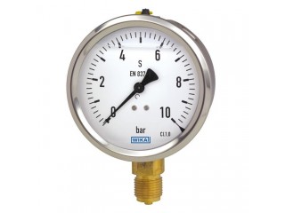 213.53充液压力表表壳标准尺寸有50 [2"]、63 [2 ½"]和100 [4"],并符合IP65防护等级。该压力表的准确度可达到1.0级,可广泛应用于工业中。