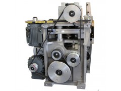 此机头在包装行业有超过半个世纪的经验。为了满足不同的应用要求,主驱动可满足不同减速比的减速箱,这样可以优化送带、收带张紧力速度来达到最大张紧力,以保证机头的稳定性和更长的使用寿命。