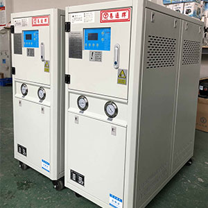 本公司推出易通牌冷油机系列适用于冷却数控机床,坐标镗床、磨床、加工中心、组合机床及各种精密机床的主轴润滑油和液压传动媒的冷却,能精确的控制油温,有效减少机床的热变形,提高机床的加工精度,易通工业油冷机是使用冷媒的吸热原理进行冷却工作的,油泵从机床油箱抽取油液至制冷系统中进行热交换处理,冷却后的液压油再经油冷机出油管路回到机床油箱中,通过油液的连续循环工作使整个油的油温持续下降。