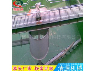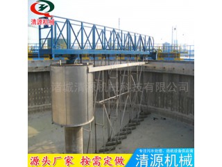 原水经中心配水筒布水后呈辐射流向池子周边溢水槽,随着流速的降低,水体中的悬浮物被分离而沉降于池底,上清液通过溢流堰板由出水槽排出池外。通过减速驱动和悬挂式组件的传动,由刮板将污泥刮集到中心集泥槽,依靠静水压力或泵排出池外。采用中间进水和排泥,周边排水,保证水流均匀。利用液位差自吸式排泥,有浮渣刮集排除装置和过载保护装置。