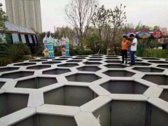 蜂窝迷宫规格:迷宫占地面积18X18M,高度2.3M,道场1.2M,200多蜂洞。