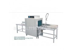 本机通过不锈钢水泵将水从水槽中抽出加压并循环使用,水槽内的水温由温控器控制在55℃(50~60℃)。本机以洗涤和漂洗循环方式运作。在洗涤过程中洗涤篮固定不动,上下洗涤臂由洗涤水推动旋转。这种方式的优点在于洗涤臂可从各个角度对碗、碟进行清洗,不存在死角,保证了洗涤质量。洗涤水槽中需要加入洗盘机专用洗涤剂,洗涤剂的主要作用是除去碗碟上的油腻及残渣,并使这些油腻和残渣悬浮在洗涤水槽中。洗涤程序完毕后是漂洗程序,漂洗臂喷出82℃(80~85℃)的高温净水(洗杯时温度控制为65℃),上一个程序的漂洗水作为下一次洗涤水用,从而保证了洗涤水的清洁性,也节约了用水。漂洗时,用分配器自动加入催干剂,能迅速挥发餐具表面水分,不留痕迹,并起到消毒作用。