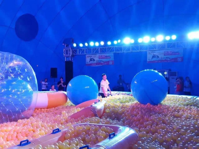 二:玩法内容:鲸鱼岛百万海洋球让海洋球的玩法不再单一.海洋球池里不只仅有海洋球.除了充气大滑梯外.还有滚筒.碰碰球.蹦床.小黄鸭.香蕉船等我们在移动水上乐土玩水经常见的设备.而在海洋球池里玩这些会更有一番兴趣.