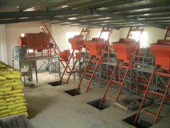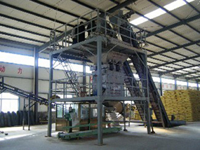 一套完整的掺混肥生产线包括全自动配料系统,提升运输机,掺混肥专用搅拌系统,成品储料仓,自动定量包装称,缝包机等组成.