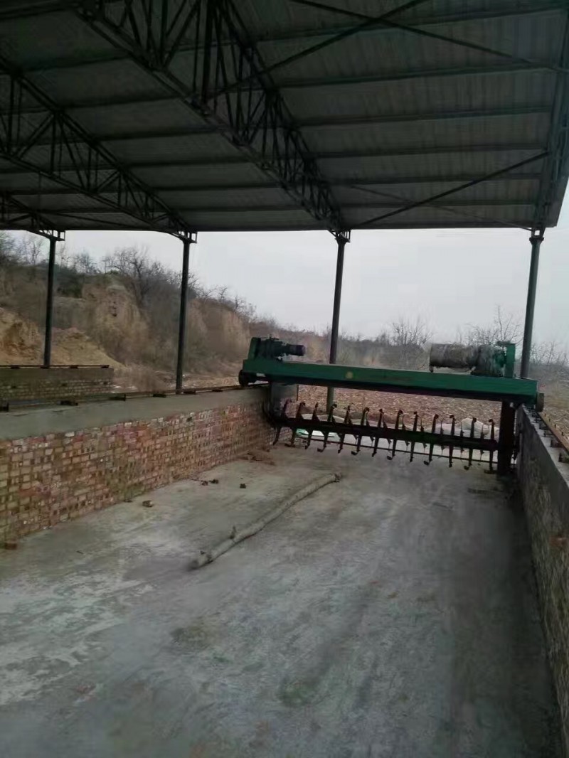 ①首先启动翻堆设备,启动卷扬,并翻抛滚筒缓慢放至发酵槽底部.根据地平的状况,如果同条地平水平整体误差在15毫米以下的可以将翻抛机的叶片控制在离地30毫米左右.发酵槽地平达不到这一水平的,翻抛开叶片离地只能控制在50毫米左右。调节好翻抛机滚筒离地位置后,再将设备调至工作行走速度进行翻堆。翻堆过程中要注意观察,发现叶片打地时要及时将翻抛机的滚筒抬起,以免损坏设备。
