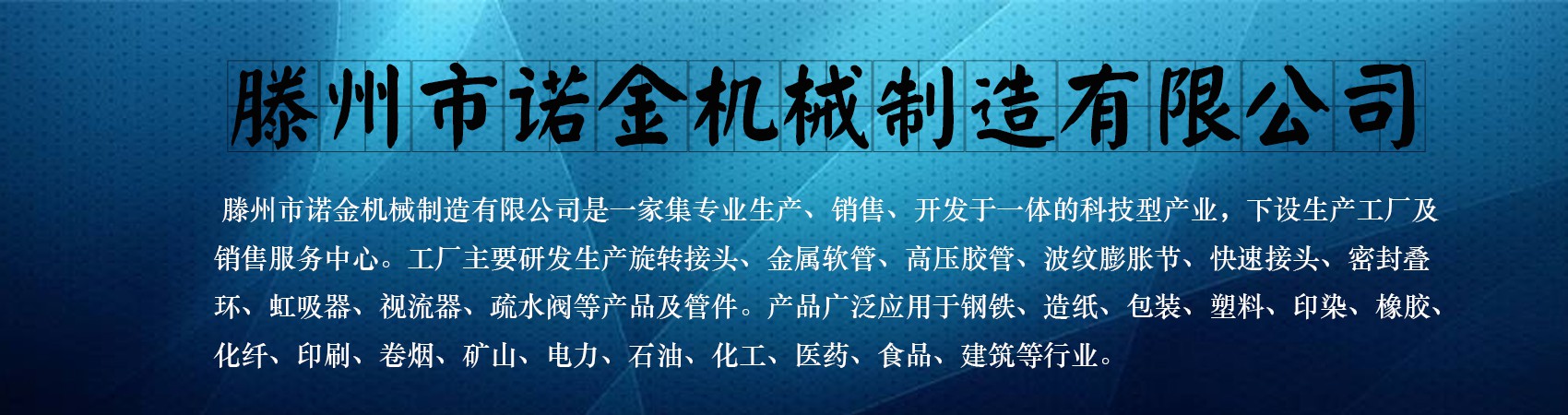 滕州市诺金机械制造有限公司是一家集专业生产、销售、开发于一体的科技型产业,下设生产工厂及销售服务中心。工厂主要研发生产旋转接头、金属软管、高压胶管、波纹膨胀节、快速接头、密封叠环、虹吸器、视流器、疏水阀等产品及管件。产品广泛应用于钢铁、造纸、包装、塑料、印染、橡胶、化纤、印刷、卷烟、矿山、电力、石油、化工、医药、食品、建筑等行业。滕州市诺金机械制造有限公司自成立以来,一直秉持“以科技为先导,视质量为生命,以创新求发展”的经营理念,为适应市场需要,更好地为新老用户服务,在产品质量和外型设计上,进行了改进,特别是机械密封方面,有了重大改进,使其产品更为专业化,内部结构更合理,密封更稳定,延长了使用寿命。使产品具有品质稳定,性能优良,安装方便等优点,不仅为用户解决了“跑、冒、滴、漏”,节约了能源,又降低了维修次数及频繁开停机所造成的损失,倍受新老用户赞誉。 [详细介绍] |