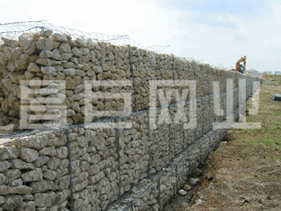 格宾石笼网采用的是组装方式是通过机器编织成上下面板、前后面板、左右面板,用绑丝把六个面绑在成网箱的形状在里面填充石头。