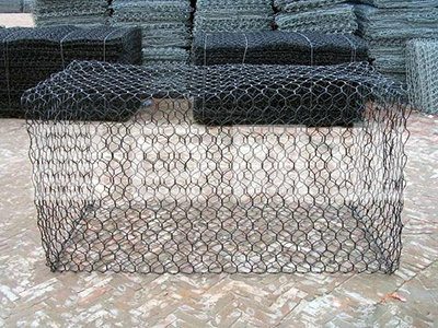 包(覆)塑石笼网又名包(覆)塑格宾网,它采用包塑低碳钢丝经过织网机编织各种不同六角形的孔径然后经过人工裁剪、绑扎组装成的网箱。