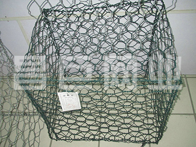 包(覆)塑石笼网又名包(覆)塑格宾网,它采用包塑低碳钢丝经过织网机编织各种不同六角形的孔径然后经过人工裁剪、绑扎组装成的网箱。