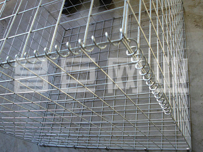 电焊石笼网是选用不同粗细的低碳钢丝进过织网机焊接成上下面板、前后面板、左右面板和中间的隔板等不同的尺寸,之后用螺旋形的铁丝把六个面连接起来组装成的网箱。