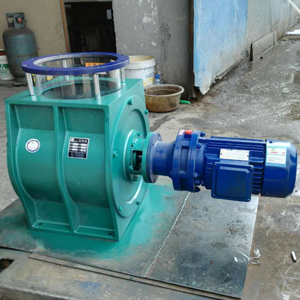 关风机用于安装在负压下工作的卸料器的排料口处,上部接受卸料器排出的物料,依靠旋转的叶轮起着输送物料的作用,又担负着密封的作用,防止气力输送过程中从排料口吸入空气,保证卸料器的正常排料。