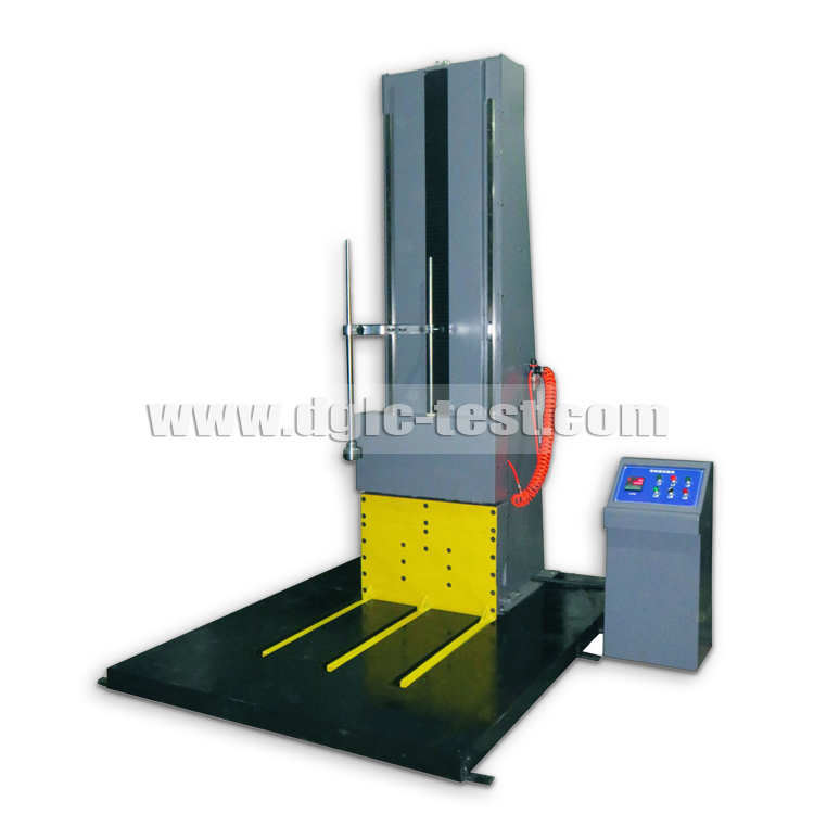 本试验台主要用于考核包装件在实际运输,装卸过程中受到跌落冲击的影响程度,评定包装在搬运过程中耐冲击强度和包装设计的合理性零跌落试验机主要用于较大型包装跌落试验,零跌落试验机由一个可以快速向下移动的“E”型叉作为试件托架,被试货物按试验要求(面,棱,角实验)放置平衡。试验时,托板高速向下运动,脱离试件,“E”型叉在被试包装货物跌落至底版胶,已在高效减振器的作用下,嵌平于底板,从理论上,零跌落试验可从零高度范围作跌落试验,跌落高度通过试验要求进行数字设定,并按设定高度自动执行跌落实验大型包装货物及试件跌落试验