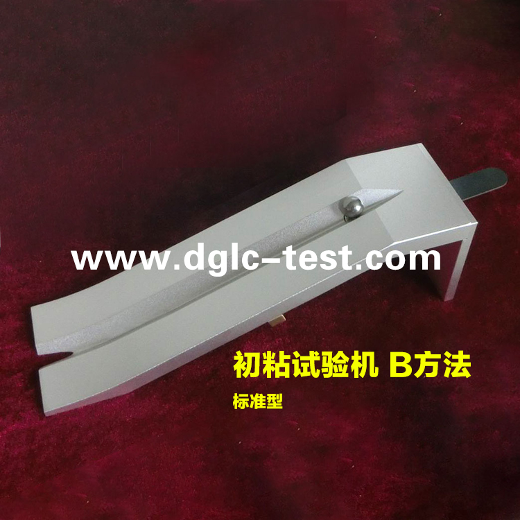 将一钢球滚过平放在倾斜板上的胶粘带粘性面,根据规定长度的粘性面能够粘住的最大钢球尺寸,评价其初粘性大小;或将一规定大小的钢球过倾斜糟,测量其在水平板上的胶粘性面上滚动的距离来评价其初粘性的大小。
