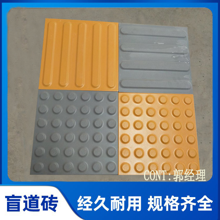 全瓷盲道砖是以天然矿物质石英、长石、粘土为主要原料按照严格的配比经过磨粉、加湿、烘干物力挤压成型的一种全瓷耐磨、抗腐蚀产品。