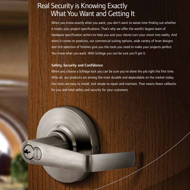 北美锁王SCHLAGE西勒奇,简式锁的发明者,1909年获得第一个门锁发明专利,距今已100多年历史,世界上最大的商业用锁制造商。北美地区最富盛名的锁具品牌,其简体式,直管式和插芯式门锁均远远超过世界各地的标准,采用高品质的原材料,生产过程中全程质量控制,精密的加工工艺和精致的款式使SCHLAGE西勒奇制造出最佳的住宅和商业建筑用锁。SCHLAGE西勒奇系列产品包括:K系列/T系列欧式内门锁,FD系列防盗锁,M系列插芯大把手锁,F系列大门锁;A系列/AL系列美标简式锁,N系列/ND系列美标简式锁,B系列美标固舌锁,L系列高强度插芯锁,R系列简式锁,M系列美标插芯锁,E系列欧标商用锁等。每款锁具有不同面板:分体圆面板、长面板;不同颜色:锻纹不锈钢色,光亮黄铜色,光亮镀鉻色;不同锁芯:双锁芯,单锁芯带旋钮,卫浴锁芯。