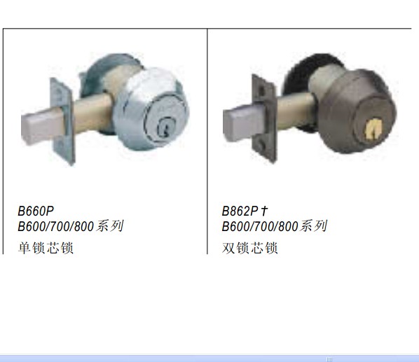 住宅和商业建筑主要和辅助门锁, B系列锁的设计满足地方法律和生命安全条例所规定的各种安全门的制备和功能要求。