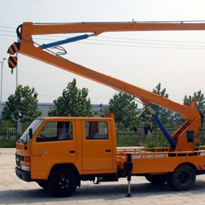 三节折臂液压举升装,采用国产、进口换向阀及液压油缸,换向平稳,操作方便灵活,转台、工作斗双工位操作,支腿与工作臂互锁,安全可靠,防止误操作,系统设过载保护阀,油压超过定值自动卸载。H型支腿,跨距大,稳定性好,支腿即可独立伸缩,又可联动,装有支腿爆闪灯,用于支腿示廓,发出光报警信号。工作斗自动调平,外置拉杆强制平衡,作业范围大,带1吨吊钩,360度连续旋转,工作斗最大载荷200KG。