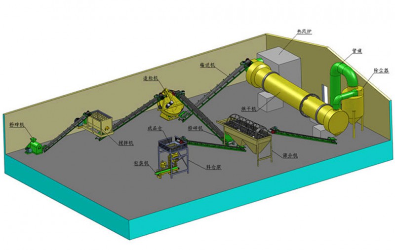 配置一条鸡粪有机肥生产线可以参考以下的生产线配置示意图,流程如下:原材料采集>>>>>粉碎机>>>>>混合机>>>>>制粒机>>>>>烘干机>>>>>冷却机>>>>>筛分机>>>>>包膜机>>>>>自动包装秤。