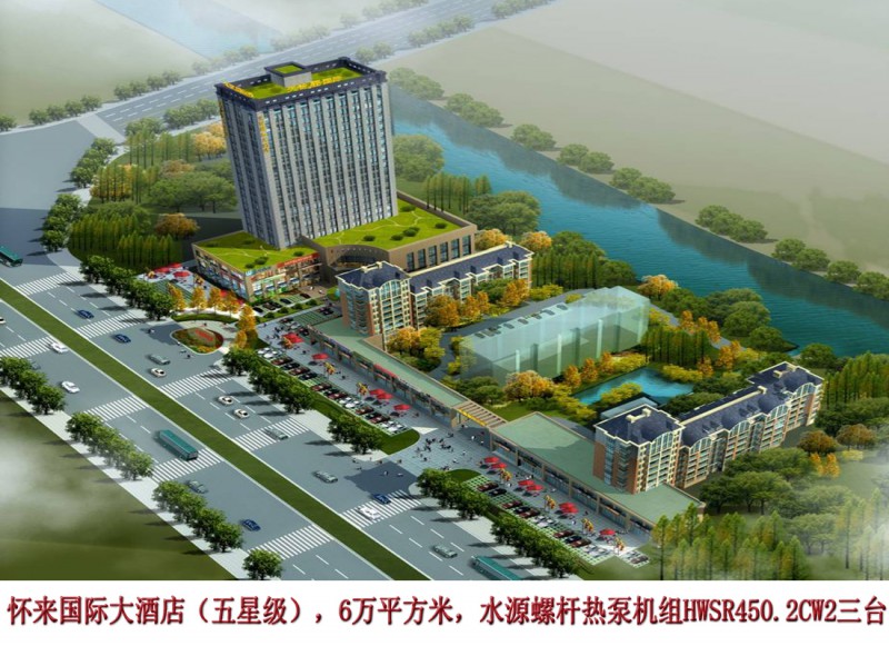 怀来国际大酒店(五星级),6万平方米,水源螺杆热泵机组HWSR450.2CW2三台