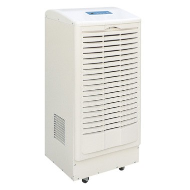 湿菱商用除湿机通过风机将潮湿空气抽入机器内部,通过压缩机制冷将蒸发器降温至露点以下,潮湿空气经过蒸发器在表面凝结成水,汇集至接水盘后,流入水箱中,干爽空气经冷凝器重新加热由出风口排出,这样不断循环将室内湿度降低。