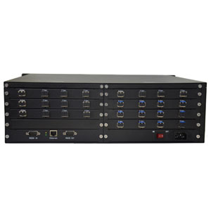 ►输入信号支持:AV、VGA、 YPbPr、 DVI、 HDMI、SDI、 光 纤、 网口,卡片式结构,极其容易扩展或更换;