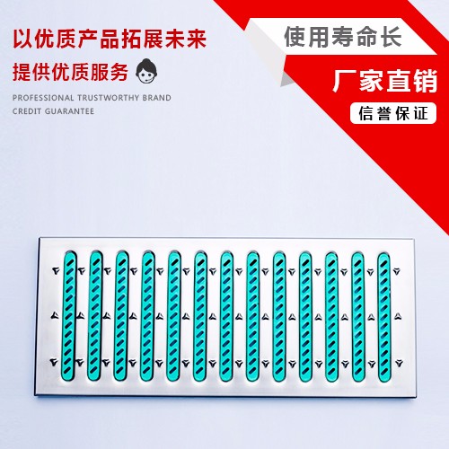 不锈钢水沟盖板采用优质不锈钢板材,经折边,冲压等工艺制作,盖板表面设计有圆形防滑凸点,特别适合油腻湿滑的环境。盖板底部两侧配有防震消音的橡胶垫,坚韧耐用。盖板配有PE材料制成的过滤网,可防堵,防鼠,是厨房的首选盖板,盖板清洗方便,不锈钢材质历久如新!PE落水孔尺寸为13mm*5mm!可有效排水。