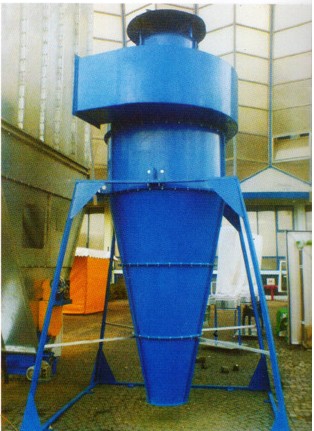 旋风除尘器是利用旋转的气体产生的离心力,当含尘气体由进气管进入除尘器时,气流由直线运动转为圆圈运动,沿壁面落下,进入排灰管。旋转下降的气流在到达锥体时,因圆锥形的收缩向除尘器中心聚拢。当气流到锥体下端时,由下而上继续做螺旋形流动,最后净化气经排气管排出。没捕集的尘粒由此消失,对粉尘效率极高。