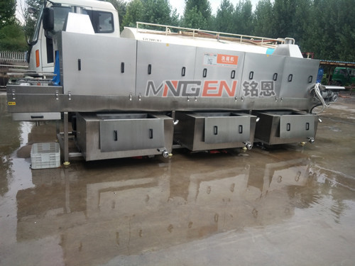 周转筐设备主要用于化妆品,屠宰、肉类、水产、蔬果、饮料、牛奶、酿造等食品加工厂或食品物流中心、配送中心等,也适用于各种托盘、周转箱、塑料筐周转箱等容器具的清洗和消毒。可节省用水量达70%,可比古老的人工清洗方法能节省人力8人。