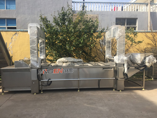 整机由漂烫段跟冷却段两部分组合而成。可根据车间的大小,摆放为一字型跟L型。整机为挂板式输送,速度,温度可调。漂烫机热源可采用蒸汽加热,导热油加热。电加热的一般不推荐(能耗高,成本高)。主要适用于各类蔬菜,烘干蔬菜的前处理及各种食用菌的漂烫,杀青。