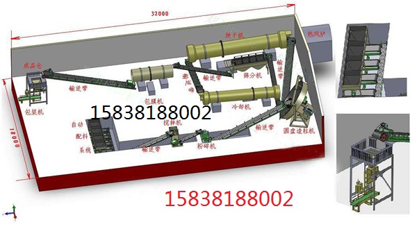 供应转股造粒整套生产线,单体基础肥料如:尿素、硝铵、氯化铵、硫铵、磷铵(磷酸一铵、磷酸二铵、重钙、普钙)、氯化钾(硫酸钾)等为原料,经粉碎至一定细度后,物料在转鼓造粒机(或园盘造粒机)的滚动床内通过增湿、加热进行团聚造粒,在成粒过程中,有条件的还可以在转鼓造粒机加入少量的磷酸和氨,以改善成粒条件。造粒物料经干燥、筛分、冷却即得到NPK复合肥料产品。复合肥转鼓生产工艺不存在环境污染问题,由于我国目前的基础肥料大部分为粉粒状,因此,我国中小型规模的复合肥厂大多采用此种方法。目前,该种生产技术在国内已日趋成熟