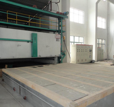 在炉膛内及两端均有底盘移动轨道,炉膛内的轨道采用耐热铸钢件,热变形系数小、使用寿命长,炉膛外口轨道采用钢材制作。