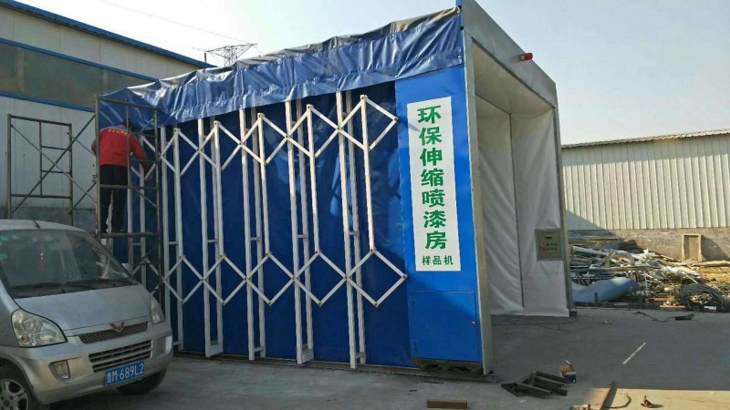 伸缩移动喷漆室是一种可以在使用时,可以自动展开形成封闭或半封闭的环保喷漆室,不使用时收缩合拢到一处的特殊环保喷漆室设备,他是先进喷漆室的设计理念及技术的集成,使用广泛。伸缩喷漆室专门解决较大型工件移动运送困难而研制的实用型环保喷漆房,它可根据使用大小,任意调整,减少对工作产地的占用。无需设备专门的移动平台,只需要配套车间的行车即可对工件进行周转;