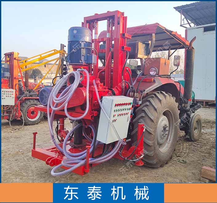 东泰机械供应中小型液压自动打井机河南省临颍县东泰机械制造有限公司是集研发、制造、修理为一体,以水井钻机、打井机、开沟机、洗井机、反循环钻机为龙头产品,生产的打井机有正循环、反循环、正反循环三种类型,可以安装在拖拉机上,农用三轮车上或者安装在履带上或做成牵引式的。