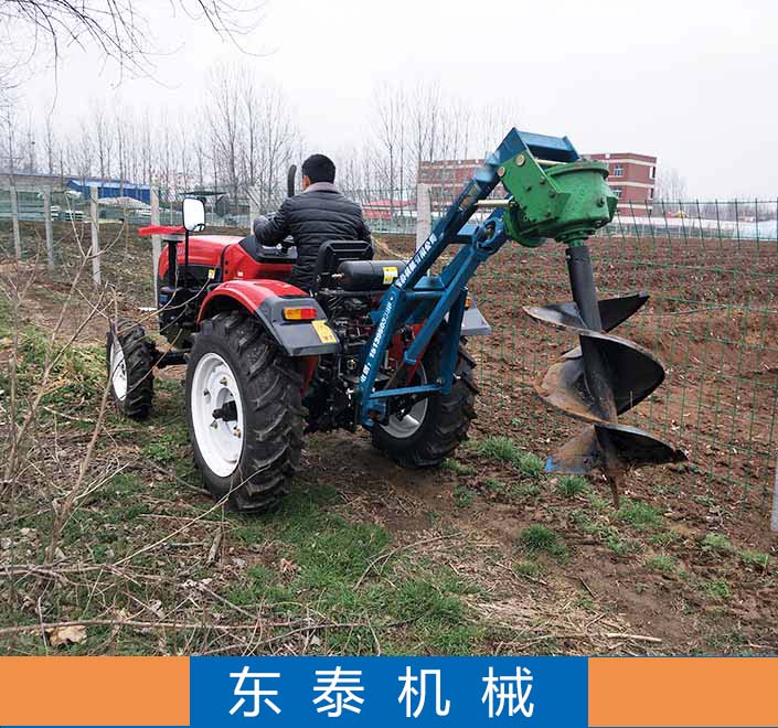 东泰机械供应柴油机带种树挖坑机植树挖坑机河南省东泰机械制造有限公司是生产打井机、洗井机、开沟机、挖坑机的厂家,挖树坑机一般用中拖 大托 小四轮都可以带,最低要求24马力以上。挖坑机深度80公分,开挖直径20-80公分,每6秒打一个树坑机,一个小时打80-200个树坑机。种树挖坑机组成:机架 传动轴 变速箱 动力头 钻头。