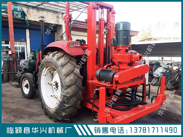 华兴四轮车带正循环打井机 河南打井机厂家 4寸正反循环打井机打井口径15-75公分,深度0-100米,钻杆直径108mm,4寸正反循环打井机可以安装在履带上,也可以安装在拖拉上面,具体可以根据客户的要求进行定制。
